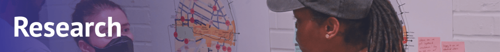 We: plan, lead, and synthesize qualitative research, centered on learning from people with lived experience. Using a design research approach, we prioritize deep interactions through methods such as contextual interviews, observations, and guided activities. Each research plan is tailored to also engage relevant stakeholders and secondary sources. Sometimes this takes the form of community engagement, learning from and with people to help determine what should happen in the future within their community.